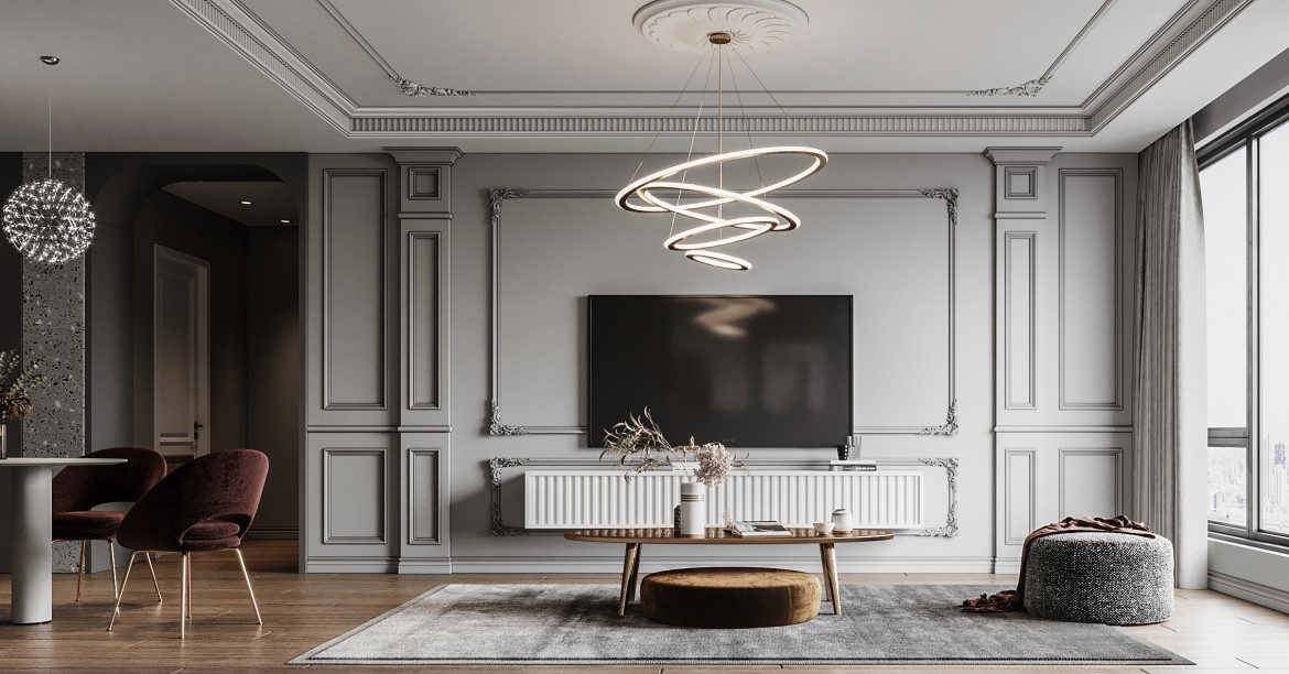 传统的美式风格比较偏向使用浓重的原木色家具,原木半护墙与立面客厅柜交相辉映,营造出沉稳大气的氛围感;拼接木制的电视背景墙,精雕细琢的细节凸显设计感;贵气怀旧的沙发、茶几、吊顶装饰,无论从材质、造型、线条和色调上,都在不经意间造就了一种休闲式的浪漫。